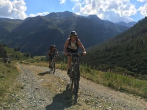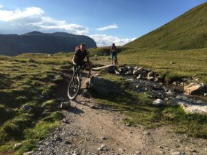 Keine zwei Wochen später durften wir ein weiteres Mal in die Alpen aufbrechen. Man lernt aus seinen Erfahrungen und diesmal starteten wir gleich in Ischgl mit einer Seilbahnfahrt, um uns die ersten 500 Höhenmeter auf Asphalt zu ersparen. Ein kurzer Besuch im Berghotel Bodenalpe, die vergessenen Untensilien der ersten Tour einsammeln, und dann ging es in den folgenden zwei Tagen wieder über Fimberpass, die Uina Schlucht, das Val Mora und den Trela Pass nach Livigno. Von dort über den Bernina und Alp Grüm hinunter auf einem Traumtrail in die Schweiz nach Poschiavo. Als nächstes Ziel rief der Mortirolo, dort hat sich ein Mann namens Pantani ein ewiges Denkmal gesetzt und ich frage mich bis heute, warum man diese Rampe mit dem Rennrad fahren will. Über Edolo weiter zum Croce Domini und hinunter zum Lago di Idro – niemand sollte Bernd erzählen, dass man mit dem Rennrad auch ohne ein einziges Mal treten zu müssen und ohne einen Höhenmeter das Tagesziel Anfo erreichen kann. Vor zwei Wochen fanden wir unterwegs den Buffione mit knappen weiteren 1500 steilen Metern im Gelände bergauf. Den direkten Weg zum Tremalzo versperrte uns ein Gewitter, so dass wir in Bondone übernachten durften. Am nächsten Morgen verfuhren wir uns in einen spektakulären Trail hinab nach Baitoni, von dort ging es locker zum Gardasee, natürlich nicht ohne in Pregasina die Kaffeepause einzulegen. Ich möchte wieder in die Berge!